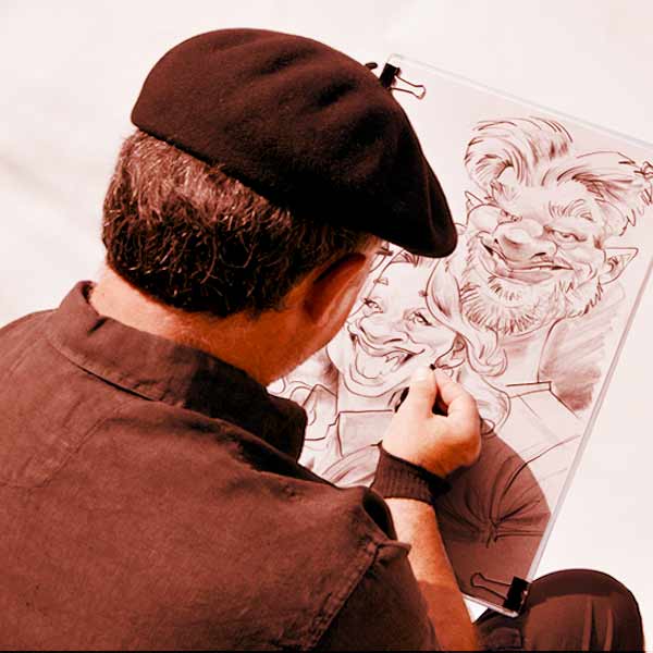 Seit einem Jahrzehnt auf nationalen und internationalen Events und Messen, ist es mir immer eine Freude, ein Lachen in das Gesicht Ihrer Gäste und Kunden zu zaubern, mit der Devise: Genauer Blick - guter Strich! Durch meine exklusive Schattierungstechnik auf drehendem Zeichenbrett ist jede Karikatur ein kleines happening mit Stil.
