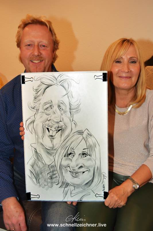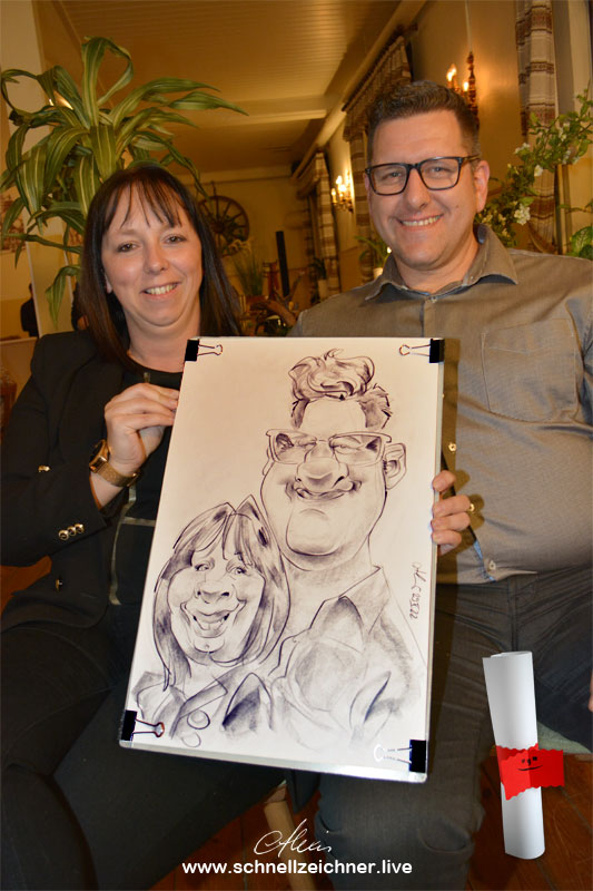 Gute Karrikaturen und gute Unterhaltung der Gäste. Eine bleibende Erinnerung an einen schönen Abend.